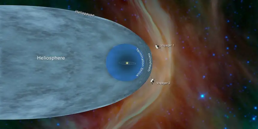 A transição de fora do sistema solar para o espaço interestelar, uma distância 119 vezes superior à que separa a Terra do Sol, demora um dia a ser concluída. A heliopausa é a fronteira teórica onde os ventos solares se encontram com os ventos estelares, soprados por supernovas que explodiram à milhões de anos. A Voyager 1 chegou a este marco com a atividade solar no mínimo, enquanto a Voyager 2 fê-lo com a atividade solar no pico. No caso mais recente, a nave “descobriu” que o material do nosso sistema solar estava a vazar para o meio interestelar. Na altura da Voyager 1, estava a suceder precisamente o oposto, com partículas estelares a entrarem no sistema Solar.